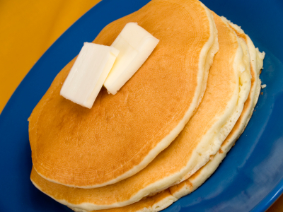 Buttermilk pancakes, served with real Canadian maple syrup and berries